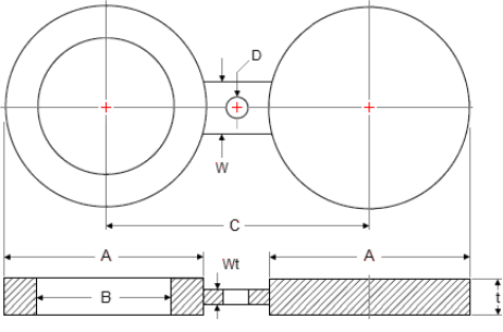 W = Thickness of the web (or tie bar) should be 6 mm minimum, or equal to Thickness (t) if less than 6 mm.